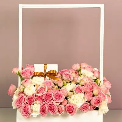 The Modern Romance Bloom Set offers a fresh twist on floral décor. Featuring pink and white roses arranged in a sleek clear test-tube vase, this modern design is perfect for homes, offices, or gifting. With its minimalist aesthetic and premium blooms, this arrangement adds sophistication to any setting.