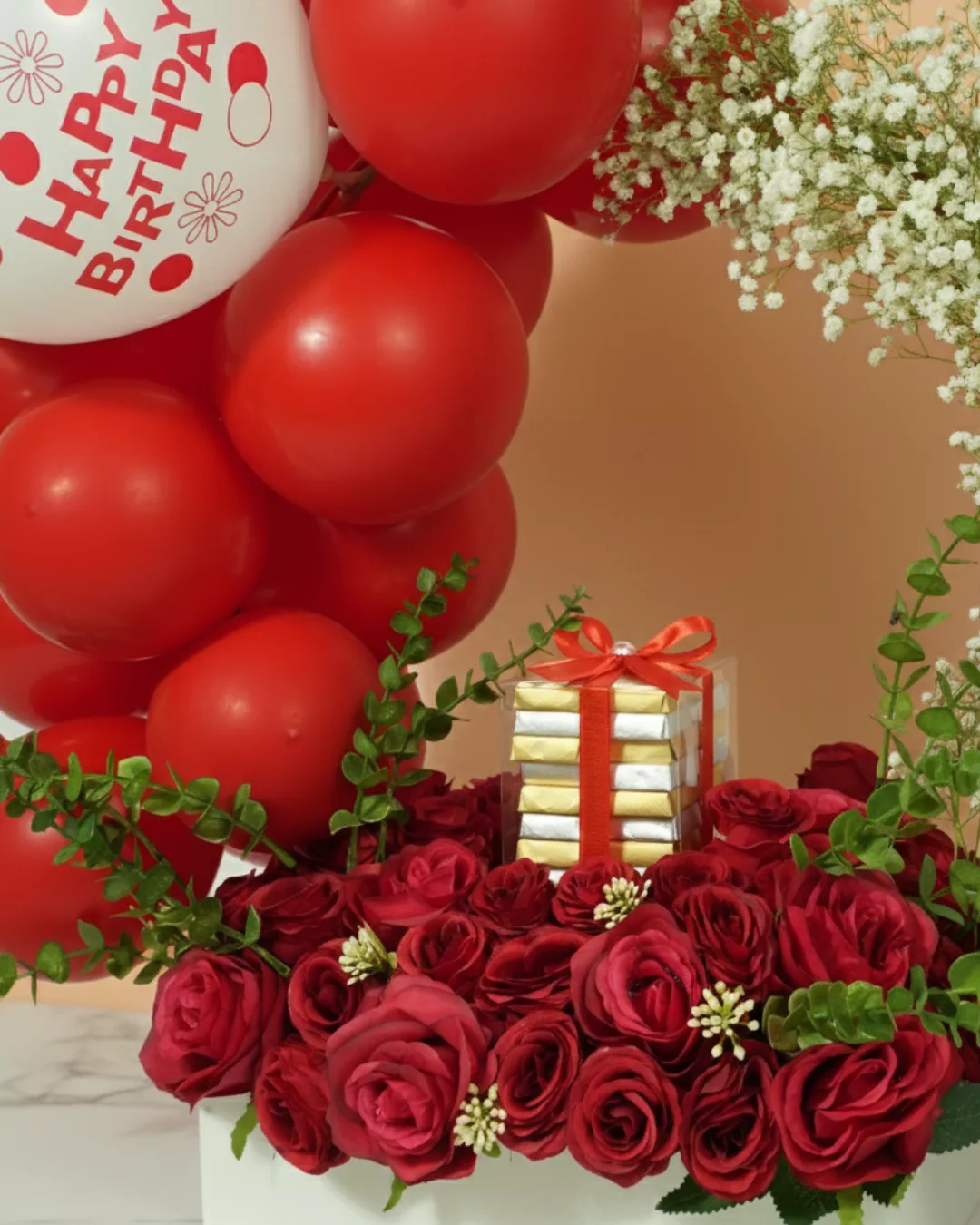 Sweet Celebration – Red Flower Happy Birthday Chocolate Basket