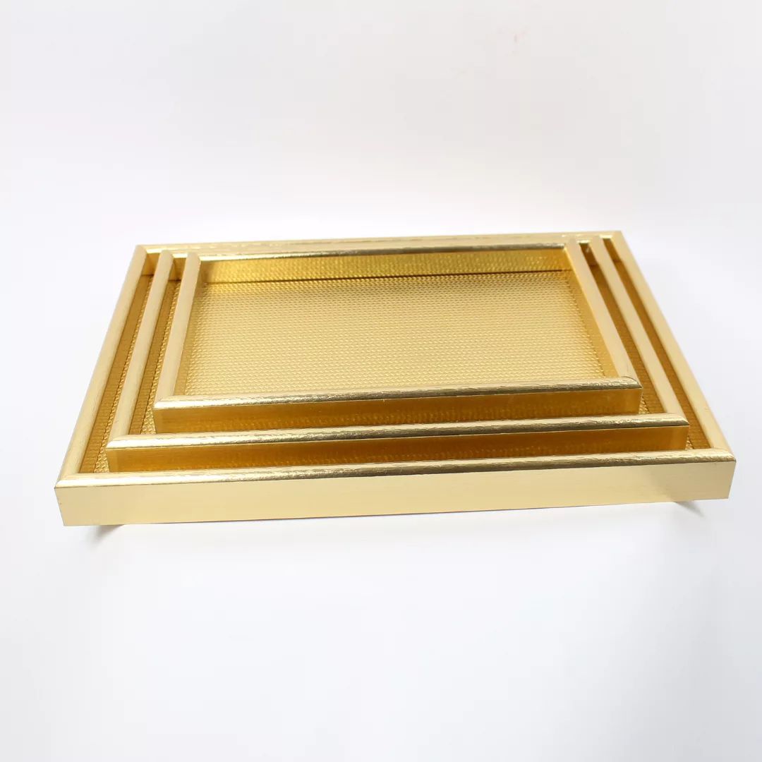 Wooden 3 PC Set Gold Rectangular Trays – Large 39×28 cm, Medium 35×23.5 cm, Small 29×18.5 cm
